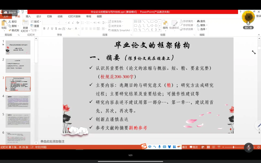 为切实提升本科毕业生论文写作水平,助力2025届毕业生高质量完成毕业论文,3月12日晚,滇西科技师范学院“银龄大讲堂”第一讲通过腾讯线上会议的形式成功举办。本次讲座以“毕业论文的框架与写作技巧”为主题,特邀边疆发展学院银龄教授周仁俊主讲,学院毕业班200余名学生线上参与。