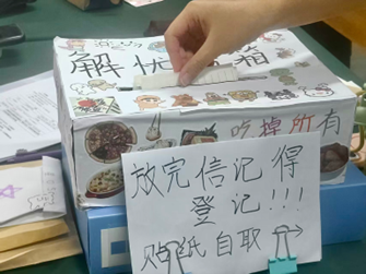 此次活动形式新颖、吸引力强,四大主题区域成为秋日校园里的亮丽风景。“树洞信笺·双向奔赴”区,同学们匿名投入烦恼至“解忧信箱”,经培训的志愿者以回信传递温暖,实现心与心的善意连接;“手作暖礼·心意传递”区,手绘卡片、编织挂饰等手作礼物琳琅满目,附带着温暖便签在陌生同学间完成心意互换;“情绪盲盒·解忧分享”环节中,同学们匿名写下烦恼并随机抽取回应,“我也经历过”等真诚共鸣让大家倍感理解与支持;户外“心晴暗号·惊喜互动”区,同学们寻找正能量暗号纸条并分享解压妙招。