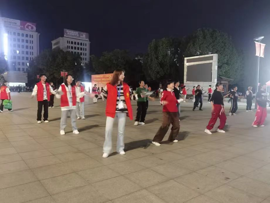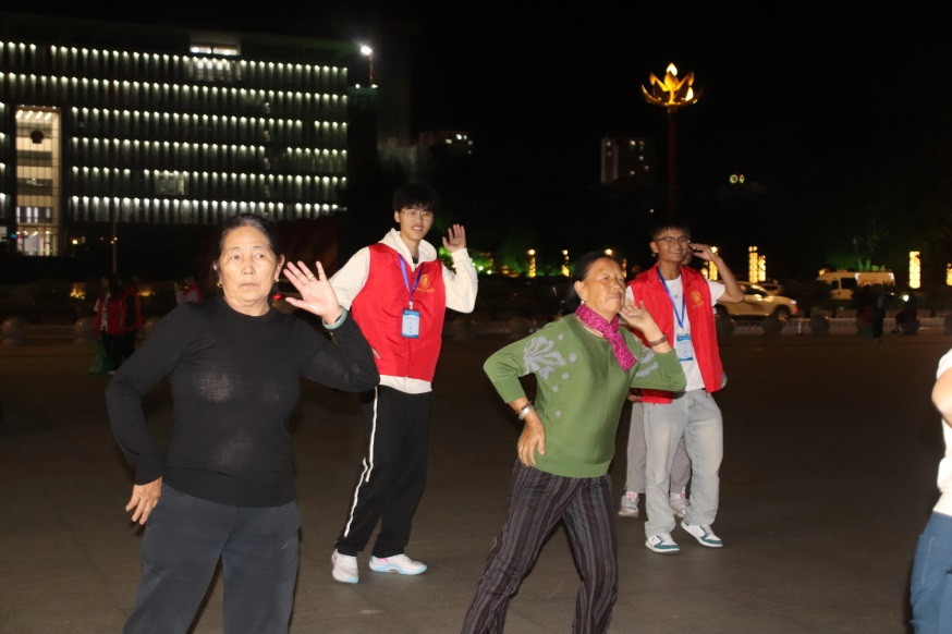 活动接近尾声,志愿者们和公园中的老年人载歌载舞,现场气氛和谐融洽。