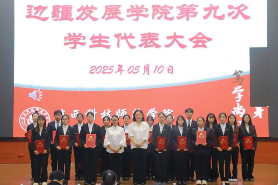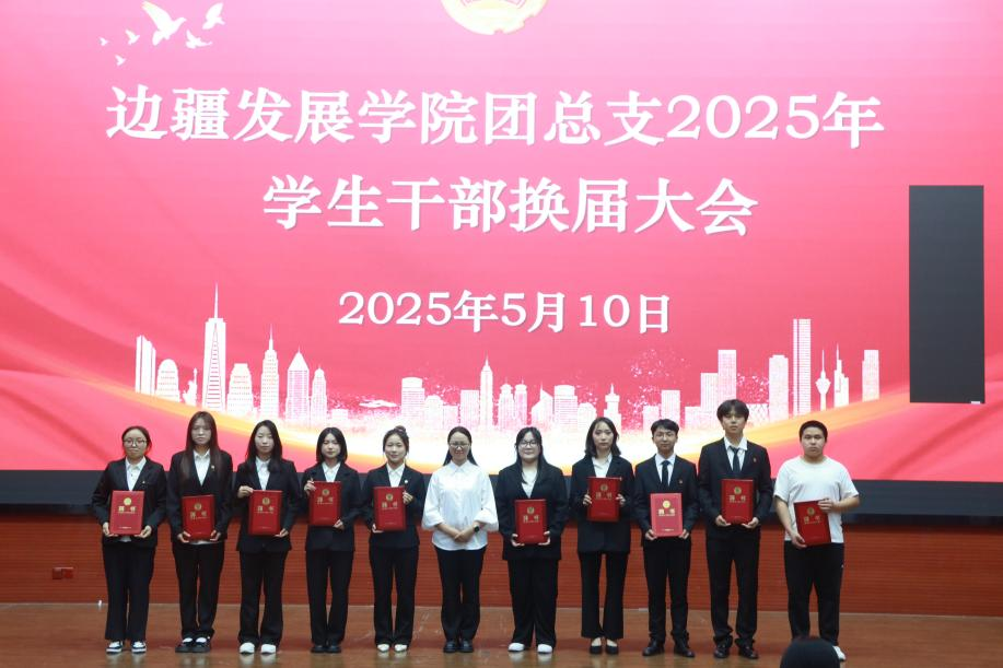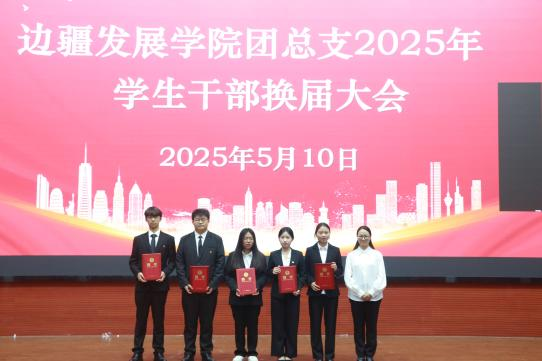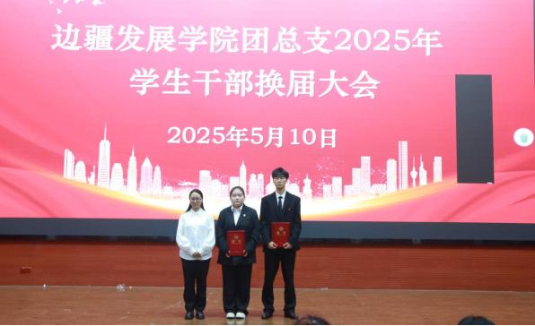 5月12日,边疆发展学院第九次学生代表大会暨团总支2025年学生干部换届大会在同声传译室隆重召开。学院党总支书记李国明、团总支书记杞丹、校学生会主席龙雨出席会议,学院团学骨干、各学院代表和各班级代表共计280余人参会。
